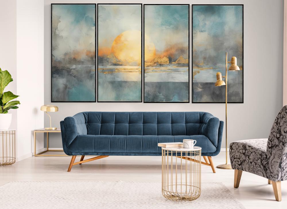- طقم من 4 لوحات مميزة وتعتبر من احدث تصاميم اللوحات الجدارية للفن التجريدي كل لوحة بمقاس 40x120 سم ( طول x عرض) بمساحة اجمالية 160x120 سم ( طول x عرض)