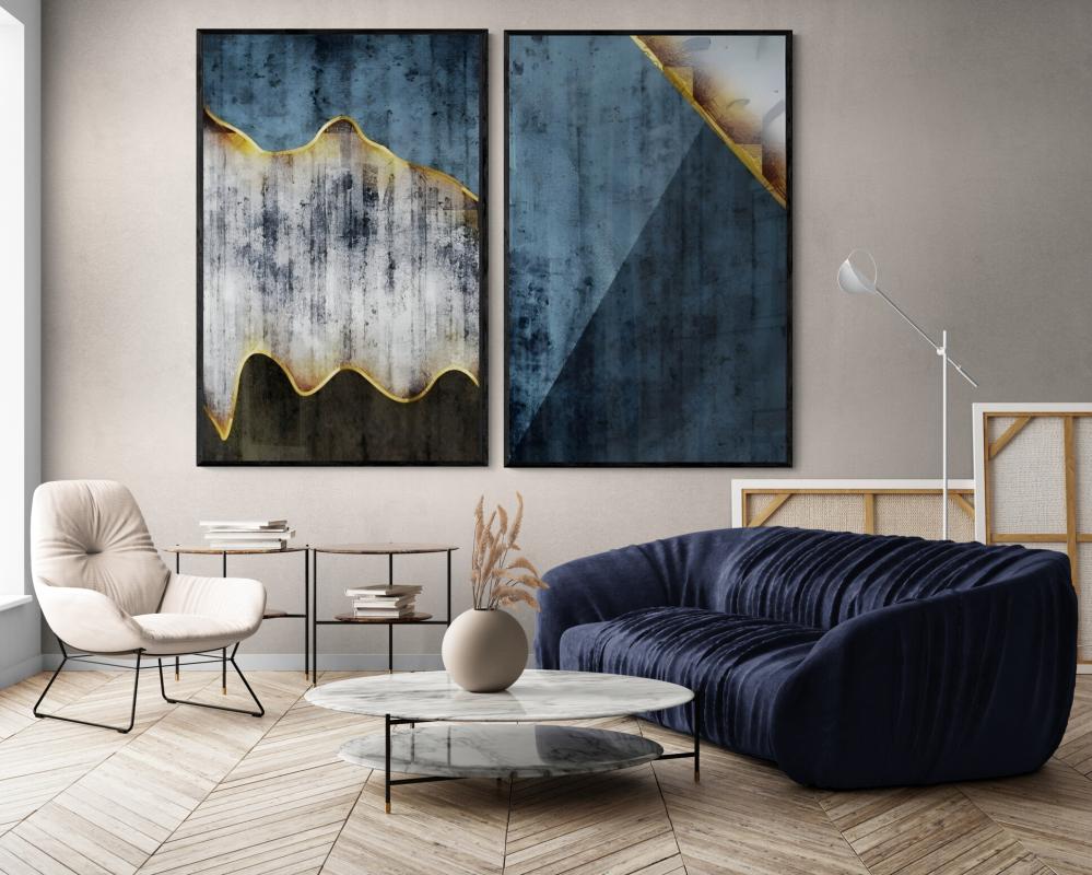 - طقم من لوحتين مميزة وتعتبر من احدث تصاميم اللوحات الجدارية للفن التجريدي
